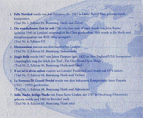 Musik: Weihnachts - Welterfolge arrangiert für Harfe und Zither |